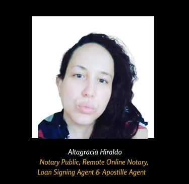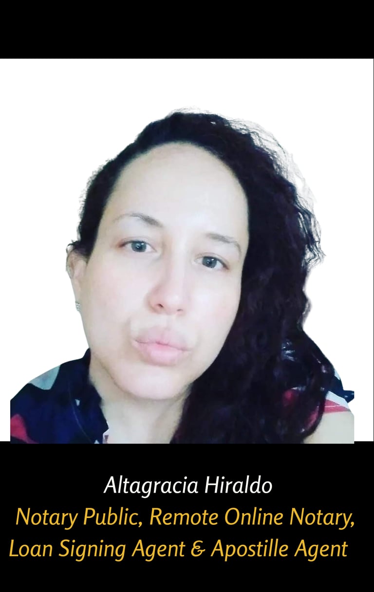 My name is Altagracia I specialize in a wide array of services, including Remote online notary services, Signing services, mobile notary services, B2B courier services, and apostille services. Additionally, I offer language translation and interpreter services through a certified and reputable language service provider I partnered with.